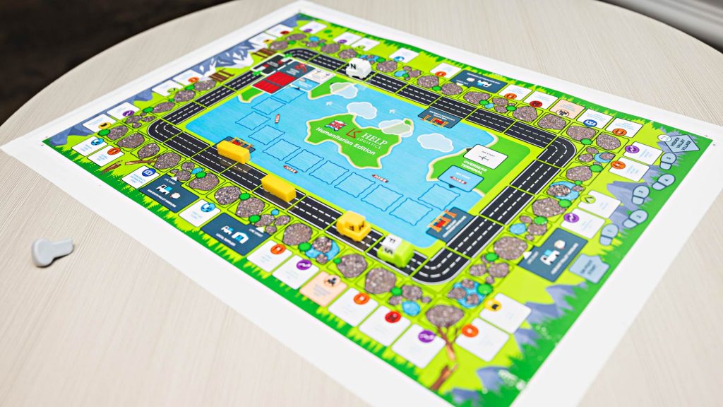 The Humanitarian Edition of the Business on the Move board game – the fifth release since 2014 – is a shining example of what can be achieved through cross-sectoral collaboration. This edition emerged from the combined expertise of HELP Logistics, and The Very Enterprising CIC, blending insights from the humanitarian sector with innovative gamification techniques rooted in global logistics. The end result – after 2 years in development and a further 2 years being rolled out – is a groundbreaking tool that allows professionals to experience the real-world pressures of humanitarian logistics in a way that is both educational and exciting.